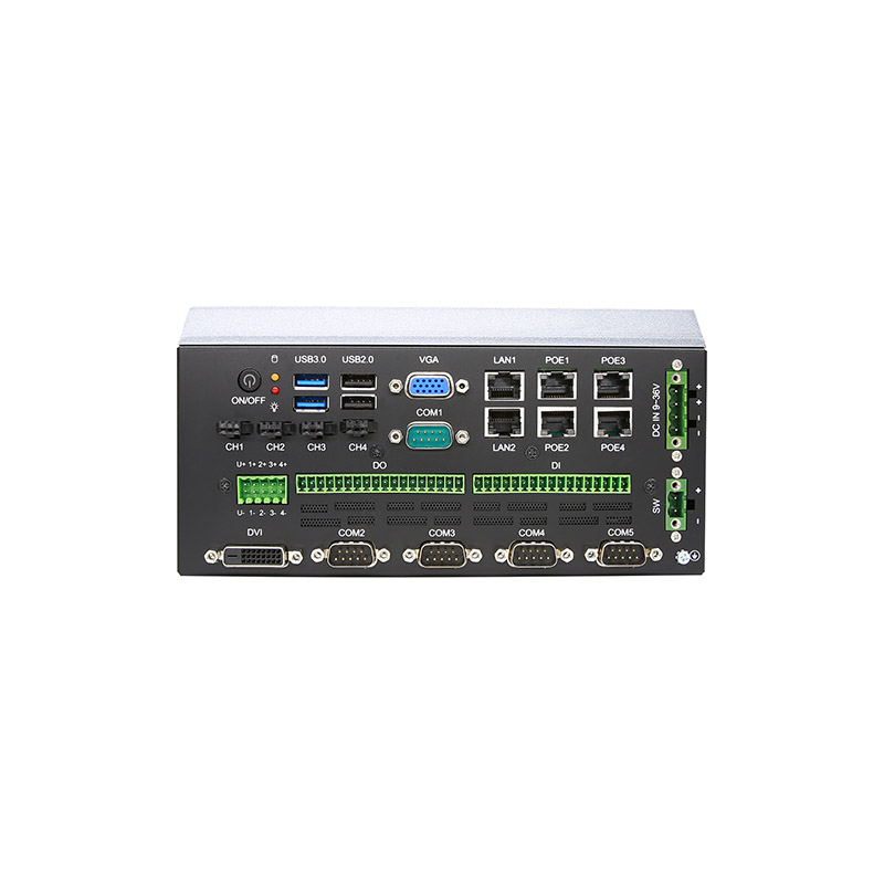Intel? 7th Kaby Lake-U series FCBGA1356 Celeron/Core processor, dual-core, 6 x LAN, DVI/VGA, 7 x USB, 5 x COM, 4 x Lighting, 32bit DI/O, 9-36V DC power input, fan-less system